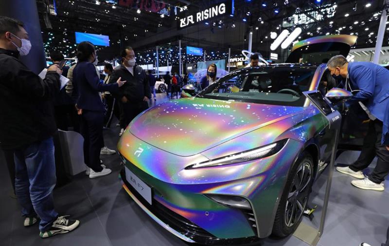 4月24日,參觀者在2023第二十屆上海國(guó)際汽車(chē)工業(yè)展覽會(huì)飛凡F7展車(chē)邊駐足觀看。新華社記者 方喆 攝