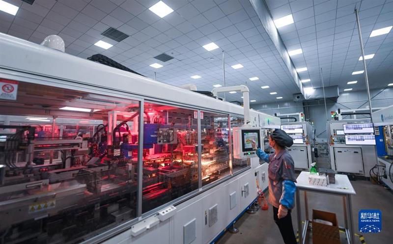 4月11日,在位于浙江省湖州市吳興區(qū)織里鎮(zhèn)的浙江貝盛綠能科技有限公司的車間內(nèi),自動化流水線在加緊生產(chǎn)出口歐洲的光伏組件。新華社記者 徐昱 攝