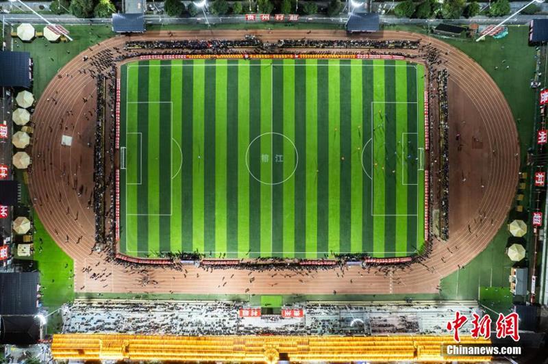圖為1月18日晚,航拍2024年貴州“村超”預(yù)選賽現(xiàn)場。(資料圖)唐哲 攝