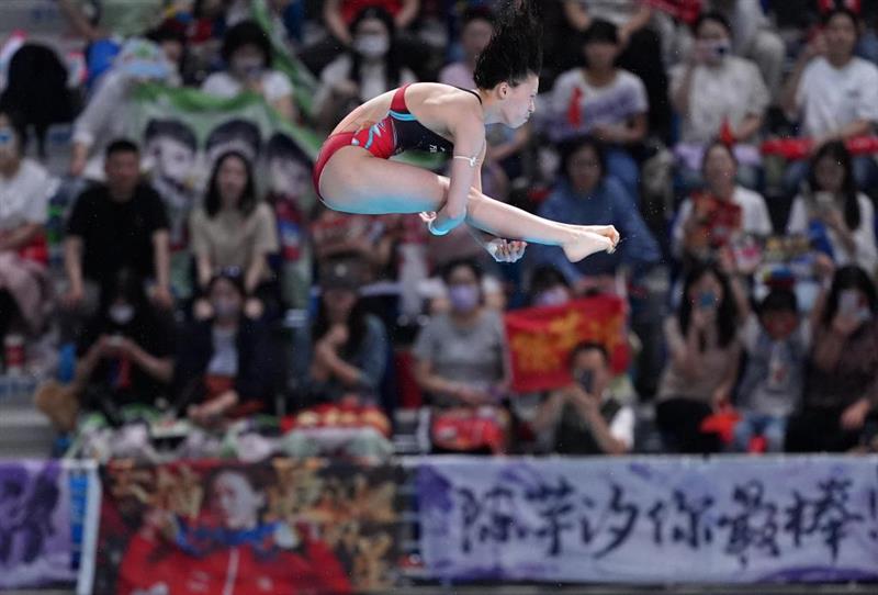 ??4月21日,全紅嬋在比賽中。新華社記者 李一博 攝