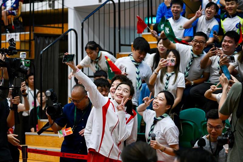 ??“我最想見的就是潘展樂和全紅嬋。”來自澳門童軍總會(huì)的張錦佩說,潘展樂的勇氣、全紅嬋的活力深深吸引著她,他們不畏困難、為國(guó)爭(zhēng)光,是自己學(xué)習(xí)的榜樣?!案兄x國(guó)家,感謝澳門,讓我能有這樣的機(jī)會(huì)?!?/span>