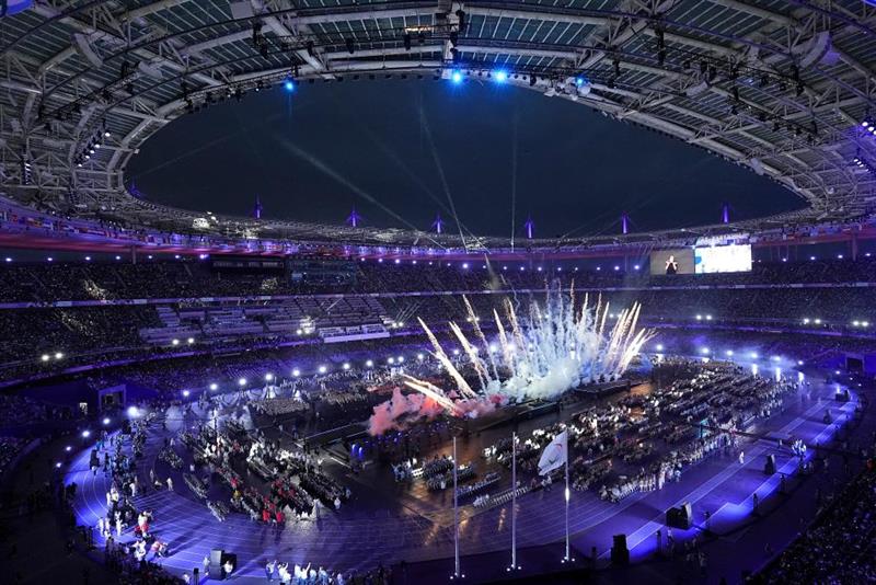 ??法國(guó)總統(tǒng)馬克龍和國(guó)際殘奧委會(huì)主席安德魯·帕森斯一起亮相后,一位號(hào)手吹響了法國(guó)國(guó)歌,在數(shù)萬(wàn)人的齊聲合唱中,法國(guó)國(guó)旗升起。隨后,各代表團(tuán)旗幟在現(xiàn)場(chǎng)演奏中入場(chǎng)。