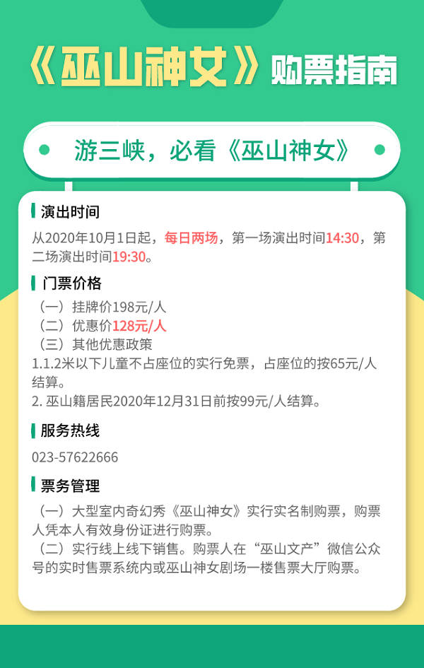 由湖南廣電原創(chuàng)的《巫山神女》室內(nèi)奇幻秀,通過現(xiàn)代創(chuàng)意的形式,講述了巫山神女的故事,還原了一個(gè)立體的、玄幻的、敢愛敢恨的瑤姬形象,融合了巫山美景、文化、物產(chǎn)等元素,震撼且感人。自10月1日公演以來,受到了來自媒體、觀眾的諸多好評(píng)。未來,《巫山神女》將作為巫山縣重點(diǎn)打造和推出的旅游產(chǎn)品,以每天兩場的頻率,持續(xù)上演。游三峽,必看《巫山神女》。無論觀劇之前,游客是否游覽過三峽,《巫山神女》的加入,都將讓旅途變成一次穿越千年的奇遇。