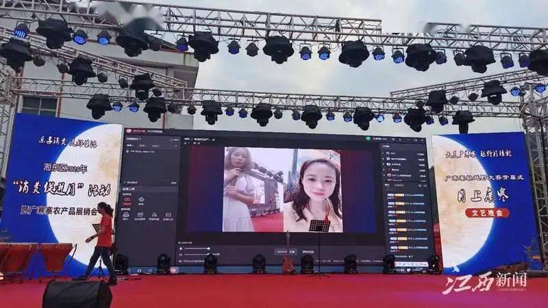 樂享消費,美好生活,在《月上廣寒文藝晚會》前,現(xiàn)場還舉辦了湘東區(qū)2020年“消費促進月”活動,通過與全國各地主播現(xiàn)場連線直播推廣,令廣寒寨的農(nóng)副產(chǎn)品沖出本土,走向全國,進一步助力脫貧攻堅。