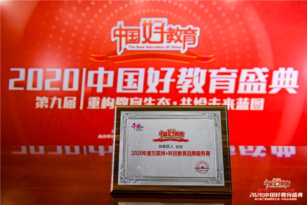 本次盛典通過中國網(wǎng)、網(wǎng)友投票和業(yè)內專家評選的方式,推選出真正的年度“中國好教育”。廈門創(chuàng)匠信息科技股份有限公司(股票代碼:873399,下面簡稱“創(chuàng)客匠人”)受邀參加此次盛會,榮獲“2020年度互聯(lián)網(wǎng)+科技教育品牌服務商”。