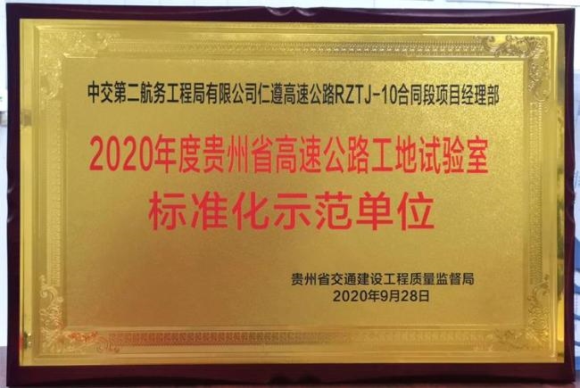 中交二航局仁遵高速項目工地試驗室榮獲貴州省質(zhì)監(jiān)局嘉獎